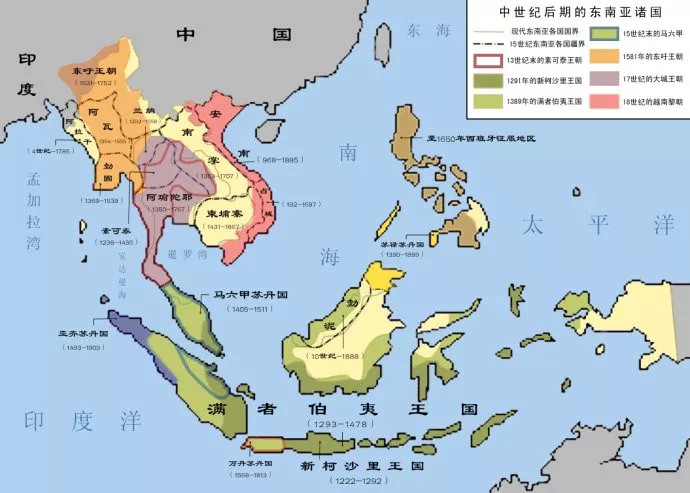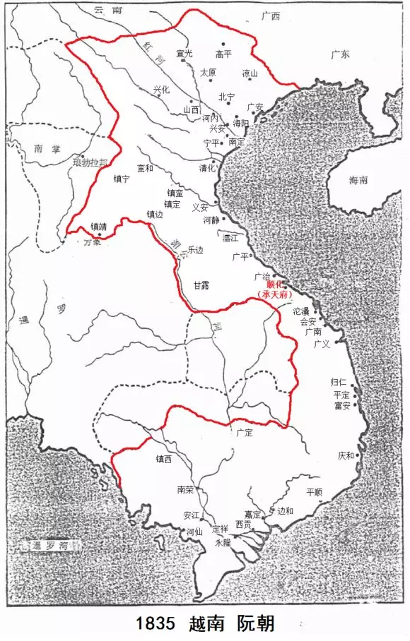17—18世纪,柬埔寨宫廷内乱不断,越南于1698 年出兵占领了湄公河三角洲地带,形成了今天越南最为发达的南圻地区。1802 年,阮氏王朝建立后,由于是中华帝国衍生出来的政权,中央皇权这一套几乎照搬中国,动员力远非其它国家能比。柬埔寨以及老挝地区就在越南和暹罗两个东南亚霸主的夹缝中求生存,如果不是法国人的突然搅局,很可能这一片都要被瓜分。