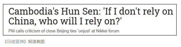 就像由日本经济新闻社主办的第26届“亚洲的未来”国际会议上,在会议开幕式上,面对日方提出的“柬埔寨过于依赖中国”的担忧时,柬埔寨首相洪森明确予以反驳。他表示,中国在基础设施建设、新冠疫苗等领域为柬埔寨提供大量帮助,相关指责并不公平。他还反问道:如果不依靠中国,我还能依靠谁?