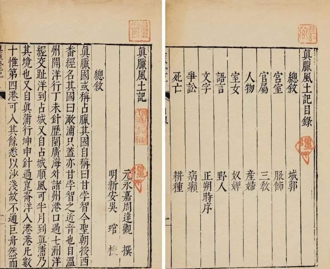 81年之后(1296年),中国使节周达观漂洋过海来到这片土地,并用了近一年的时间观察了解这里的风土人情,著成《真腊风土记》一书。通过书中描述,彼时高棉人民丰衣足食,民风开放热情,社会秩序井然,很多来此的中国商人竟也乐不思蜀,最终选择留居于此(《真腊风土记》全书共41篇(含总叙),约8500字,后被收录到《四库全书》中,属地方志。1819年,法国人将《真腊风土记》译成法文,首次在巴黎刊行,1861年,法国生物学家享利·穆奥在密林深处发现了吴哥古迹,他的观察手记和手绘实景,以旅行笔记方式出版后,引起了世界轰动)。