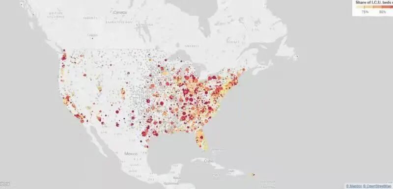 截至北京时间1月4日,美国新冠病例超过5600万例,死亡病例超过82万例。据美国卫生与公众服务部(HHS)数据,目前全美有超过10.3万人因感染新冠住院,是近4个月以来的最高值。全美约有四分之三的病床已被占用,七分之一的病床用于收治新冠肺炎患者。全美重症监护病房(ICU)中有超过18500名新冠肺炎患者。2021年12月30日此前一周内,全美ICU平均占用率达77%。