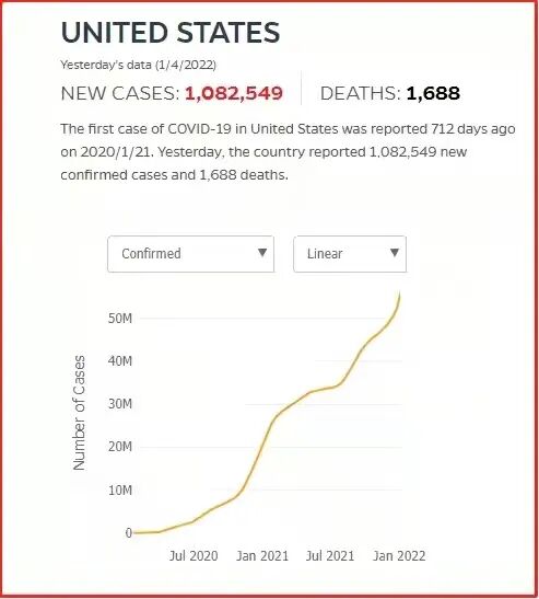 2021年刚过没多久,2022伊始全人类就迎来了疫情一波新高峰。疫情反扑如此猛烈,用猝不及防形容,丝毫不过分。罪魁之首,当然是“新冠蛊王”奥密克戎。据美国约翰斯·霍普金斯大学汇编,当地时间1月4日,全美录得新感染数108万人,不仅是美国一周前刚刚创下的单日新增纪录的两倍,也突破了全球所有国家单日新增纪录。