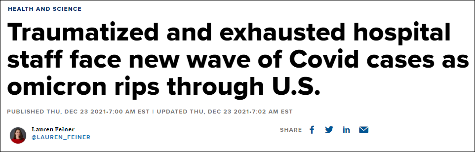 据美国劳工统计局数据,自2020年2月至今年11月,全美医护行业共流失了45万劳动者,大部分是护士和家庭护理人员。医护人员身心疲惫,不仅来自于医院劳动力短缺,更是来自拒绝戴口罩、拒绝打疫苗的病人的不理解。奥密克戎毒株冲击,只不过是加剧问题。