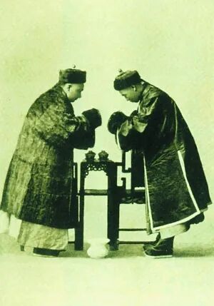 “奇拜”是先屈一膝而拜,而后双膝着地再拜,又称“雅拜”。“褒拜”是行拜礼后为回报他人行礼的再拜,也称“报拜”。肃拜,是拱手礼,并不下跪,俯身拱身行礼。