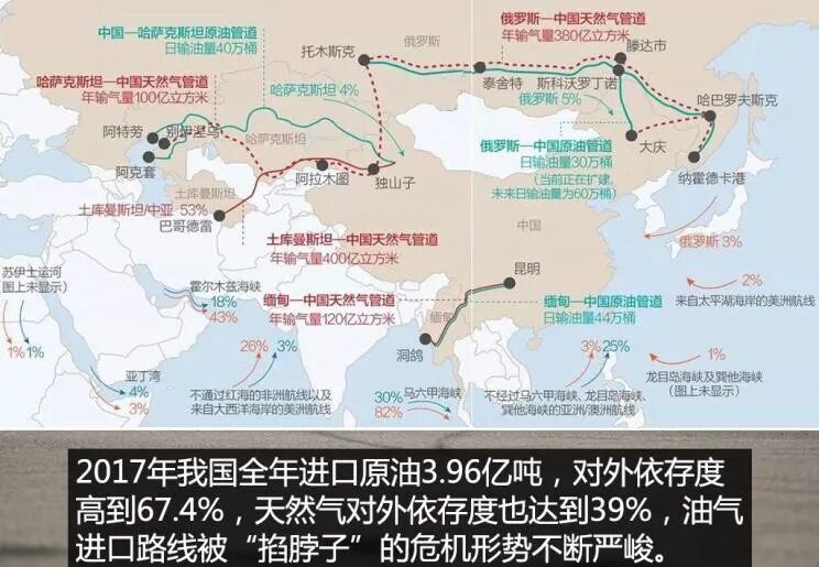 在和平时期倒没什么,一旦中美之间发生激烈的对抗或军事冲突,那么美国就可以通过封锁马六甲海峡切断我们的海上石油运输线。为了降低对马六甲海峡的依赖,我们也在想方设法拓展能源进口通道,比如通过修建中哈油气管道、中俄油气管线、中缅油气管线、规划中巴油气管线、打通北极航线。