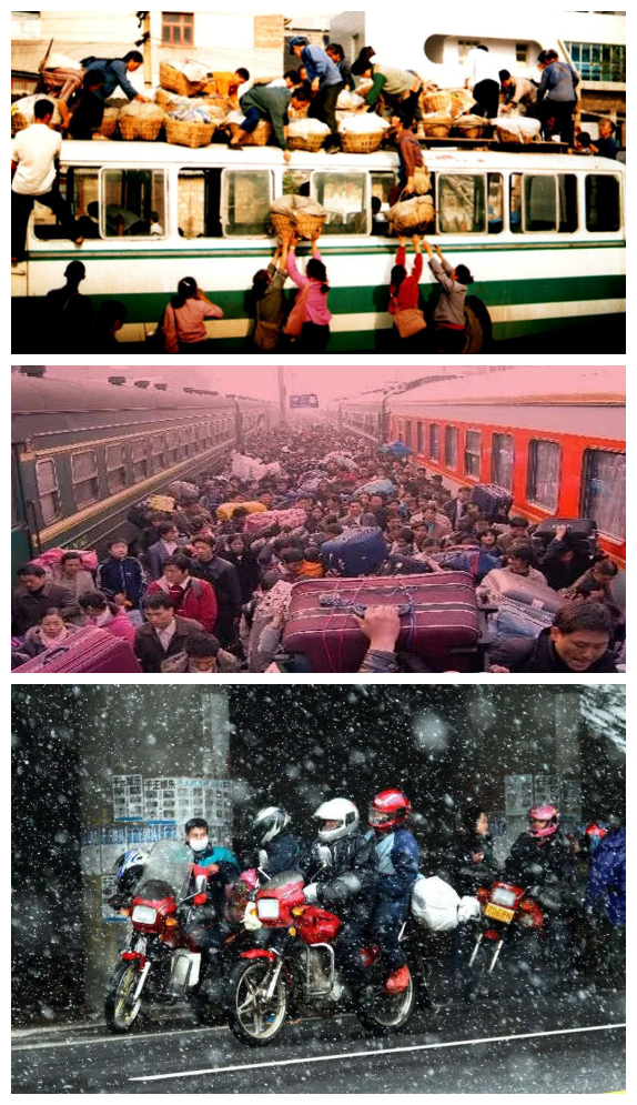 改革开放后,人员流动限制放宽,不少人选择外出打工、经商、求学。他们在春节前集中返乡,民工流、探亲流、学生流叠加构成了每年春运的三大主力军,春运逐渐演变成中国大规模的人口流动。有工作的地方,没有家;有家的地方,没有工作。他乡容不下灵魂,故乡安放不了肉身,才有了这种一年一度钟摆式的定期迁徙。