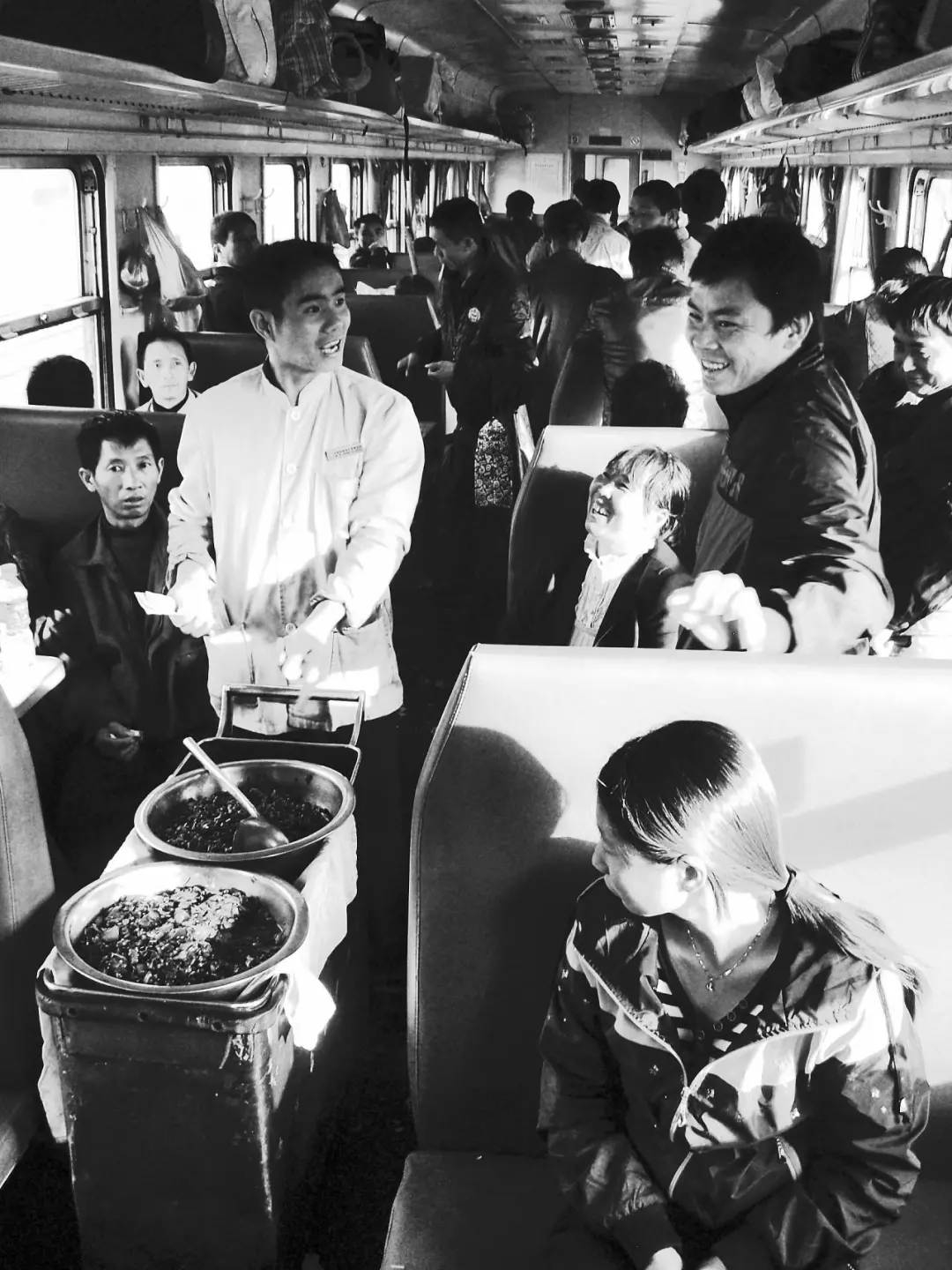 在那些年的春运旅途中,能够在绿皮火车上,半夜酣睡之时,听到这句话语的人是幸福的。至少说明他已经坐在了座位上。更多的时候,车厢内每一个能下脚的地方,都已经密密麻麻塞满了人。每一张座位的下方,有数不清的脚和鞋,座位底下说不定还躺着人。