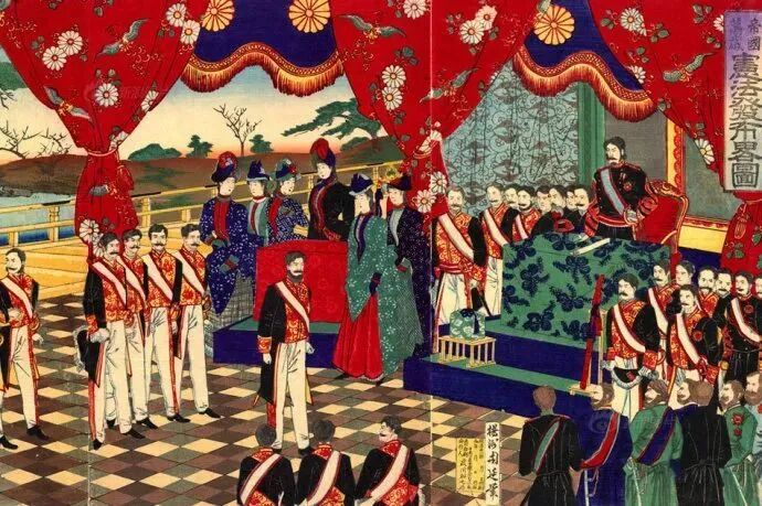 1853年7月8日,美国海军准将马休·佩里准将率领四艘战舰驶入日本江户湾,用武力威胁日本幕府停止“闭关锁国”政策,并缔结通商条约。因为佩里的军舰通体漆着防止腐蚀的黑色柏油,蒸汽机中燃烧的煤炭散发出滚滚浓烟,又被称为“黑船事件”。