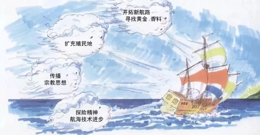 1492年8月3日,哥伦布带着女王给印度君主和中国皇帝的国书,率领87名水手,登上三艘百十来吨的大帆船,从西班牙巴罗斯港扬帆出大西洋,向正西航去。1492年10月12日,他们到达美洲发现新大陆。哥伦布和达·伽马先后成功地发现新大陆和开辟直达东方的新航路,改变了欧洲以地中海为中心的国际贸易格局,奠定了以大西洋沿岸为核心的海洋贸易基础,推动了商业革命和价格革命,加速了资本主义世界体系的建立,成为欧洲从封建社会向近代社会转型的重要“推手”。
