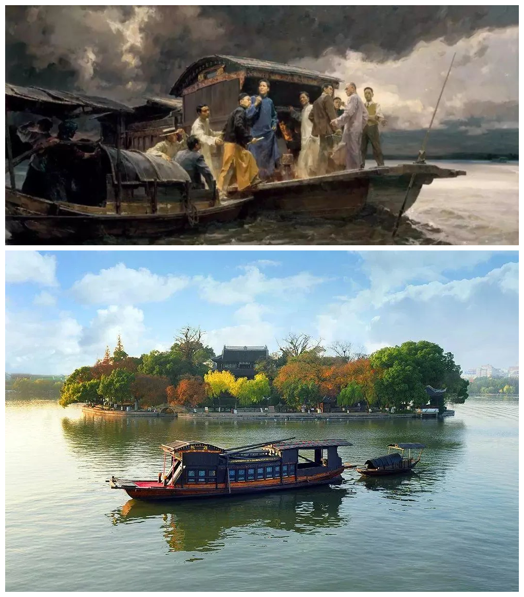 会议结束后,代表们先后离船,当夜分散离开了嘉兴,把革命的火种带向全国各地,中国的历史从此开启了崭新的篇章。1959年10月1日,南湖革命纪念馆建成开放,以湖中烟雨楼作为馆址,按照当年中共一大代表乘坐的游船样式仿制的红船纪念船正式下水,向世人展出,100年前那承载着民族希望的小小红船。波澜壮阔,一往无前。
