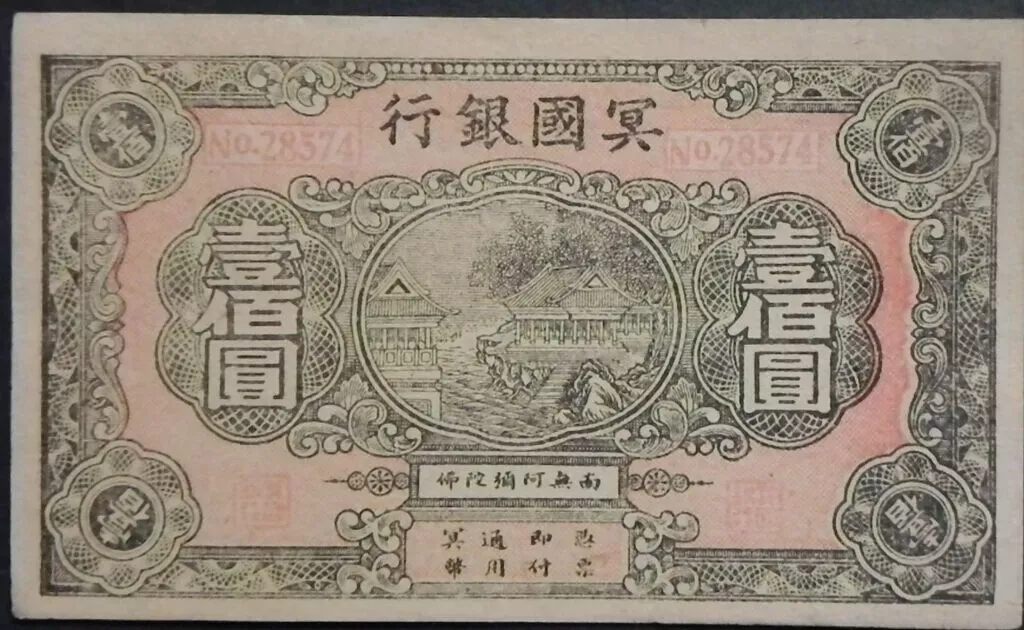 魏晋南北朝时,冥币或者说纸钱就出现了。清朝来华的美国传教士卢公明(Justus Doolittle)在他的福州地区民间风俗轶事《中国人的社会生活》中,最早记录了阳间人如何为阴间“鬼”制作这些通货。不过在过去相当长的时间里,中国人对冥币没啥讲究,烧得最多的还是黄色的铜钱纸或者没任何标记的“白钱”。