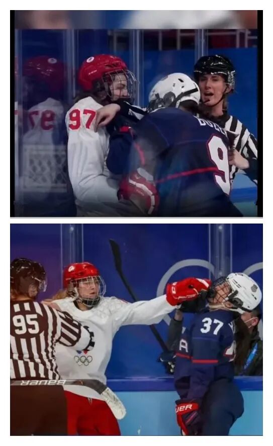 冬奥会冰球比赛鼓励“竞技”,但禁止打架!男子比赛允许运动员合理冲撞,但不允许勾、绊、击打对手;女子比赛允许身体接触不允许冲撞!相关的运动员明显已经违规!美国冰球运动员阿比-墨菲以及俄罗斯冰球队运动员玛丽亚-佩奇尼科娃,后皆被处罚。