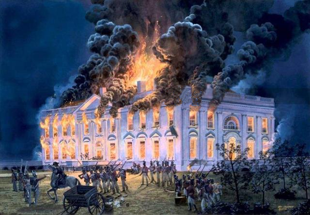 加拿大官方教材《Discover Canada》是这样写的:作为报复,爱尔兰出生的英国将军罗伯特·罗斯Robert Ross少将在 1814 年率领一支来自(加拿大)新斯科舍省的远征军,烧毁了华盛顿特区的白宫。不久之后,Robert Ross在战斗中阵亡,并以全军荣誉被埋葬在哈利法克斯。