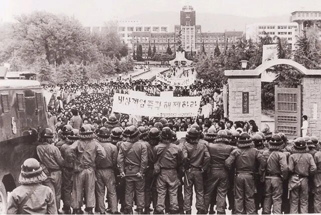 朴正熙被刺杀后,崔奎夏代理总统,韩国民主化运动崛起。全斗焕发动肃军政变夺权,金大中、金泳三率领民主人士发表《促进民主化国民宣言》,引爆大规模的示威运动,要求全斗焕下台。1980年5月,全斗焕宣布紧急戒严令,禁止一切政治活动,逮捕了金大中、金泳三等人,造成4000多人伤亡。这就是著名的光州事件。