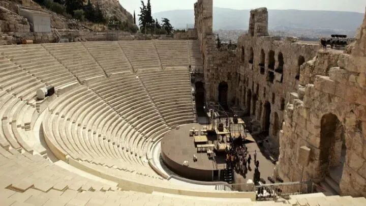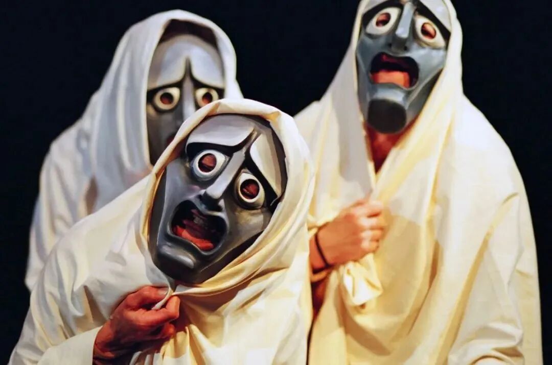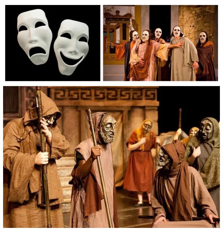 古希腊人看戏基本都在露天的半圆形剧场。 戏剧最开始只有一个演员和一个歌队,后面才慢慢扩充到两个,三个。所有的演员演出时都要戴面具,喜剧的面具有喜感,悲剧的面具是哭相。