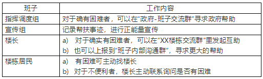 困难帮扶 原则:为弱势群体和生活困难者提供帮扶,保障其“能收到饭”,“能收到药”。后续进行“正能量宣传”,提振居民信心。