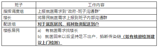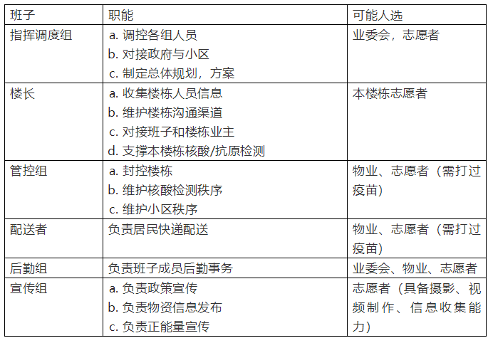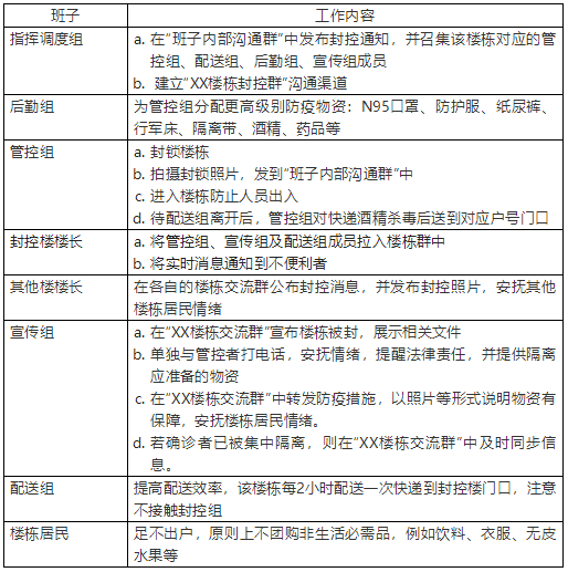 下面是网友编写的业主自组织防疫管理方法:成立班子,确定角色:指挥调度组,楼长,管控组,配送组,后勤组,宣传组。