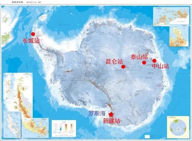 时光荏苒,斗转星移,时至今日,我国在南极已经有了长城站,中山站,昆仑站,泰山站四个科考站,目前在恩克斯堡岛上的第5个科考站罗斯海新站也正在积极建设中,预计今年就能够建成。南极洲四大战略要地,南极磁点、南极极点、南极寒点、南极高点,目前中美俄法各占一个。