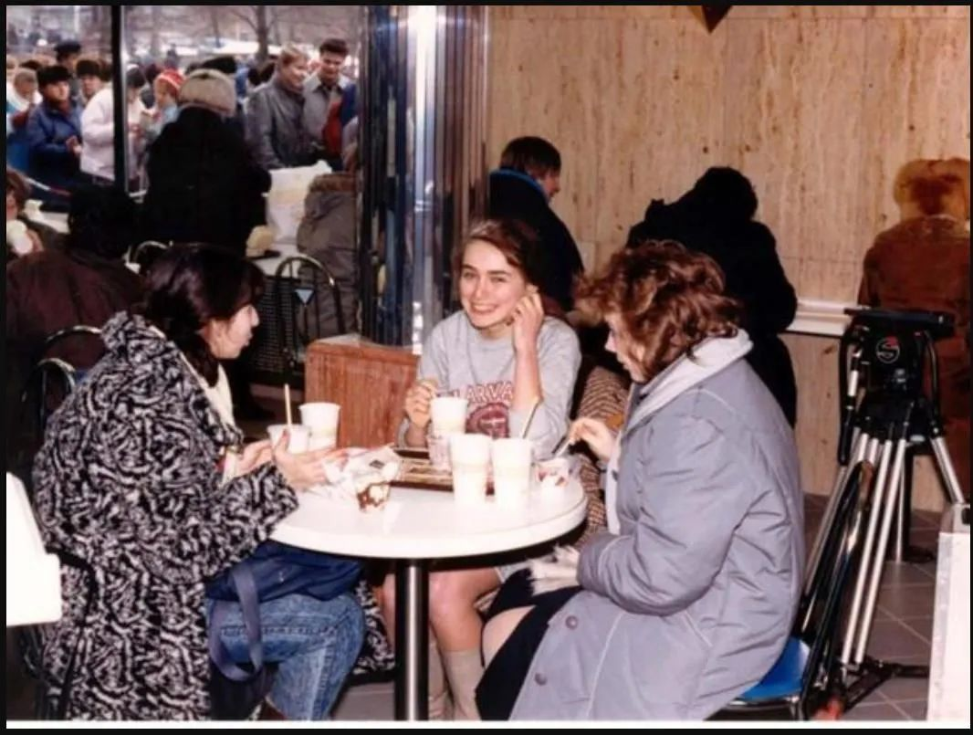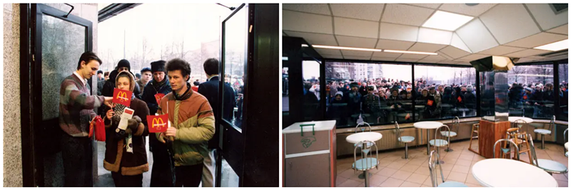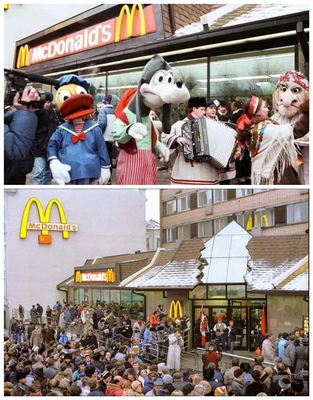 1990年1月31日,在经过14年的漫长争取后,麦当劳在苏联的第一家门店终于开门迎客。那是个零下15°的寒冷日子,屋檐上还残留着薄薄积雪,5000多名莫斯科市民有序地排着长队,将普希金广场绕了足足3圈,只为“尝一尝资本主义的味道”。