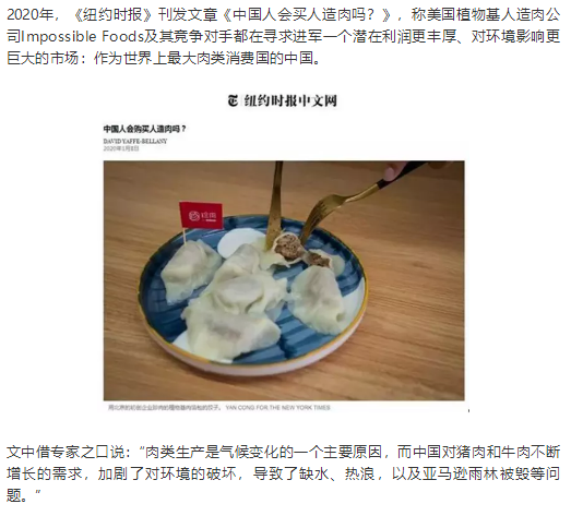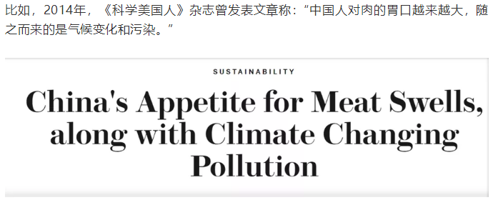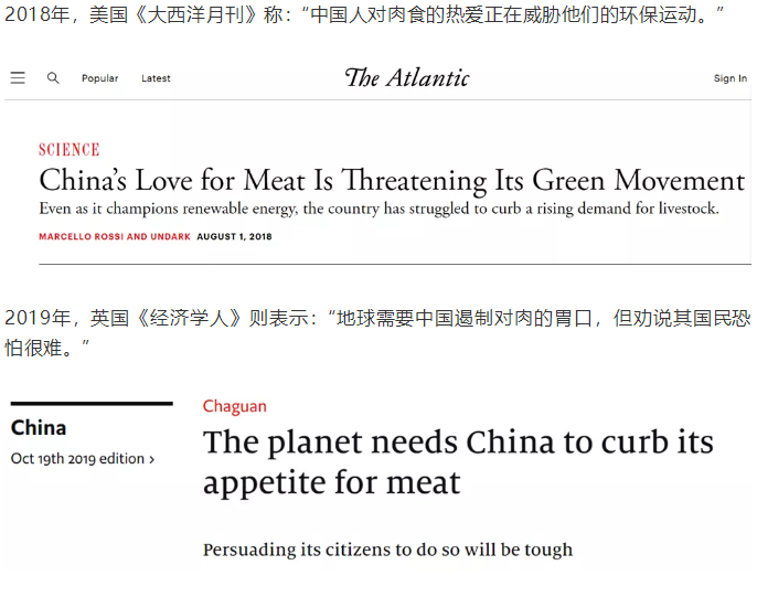 2016年,中国城镇人口人均肉食消费量约34.9公斤,农村人口人均肉食消费量约28.6公斤。据美国农业部发布的数据,美国每年的人均肉食消费量都在100公斤以上。西方一些媒体总爱拿中国的总消耗量大做文章,却对人均消耗量闭口不提。同样是人,为什么中国人就应该少吃肉呢?