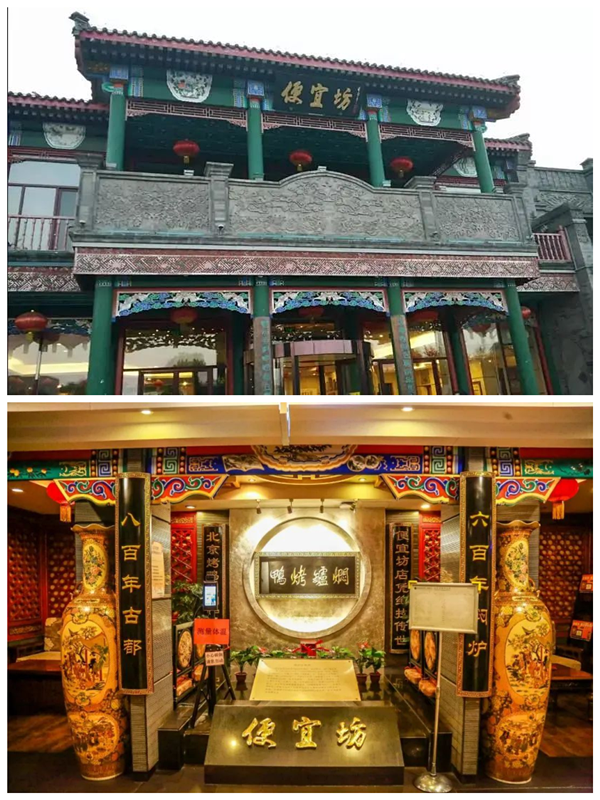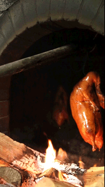 据元代《饮膳正要》记载,当时宫廷已有烧鸭子。明太祖朱元璋也喜欢吃鸭,据说“日食烤鸭一只”,宫廷里的御厨们就想方设法研制鸭馔的新吃法来讨好万岁爷,研制出了挂烧烤鸭和焖炉烤鸭这两种。“全聚德”是挂炉烤鸭的代表,“便bian宜坊”是焖炉烤鸭的代表。