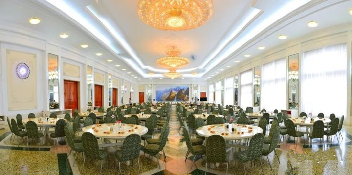 国宾级餐厅,国外也有。2018年,朝韩首脑会面,平壤“玉流馆”冷面就名扬四海。平壤大同江畔,坐落着一排青瓦白墙的二层朝鲜传统建筑,这里就是玉流馆。玉流馆以白色墙体展现餐厅干净整洁的意蕴,配上淡青色的歇山式大屋顶,弯曲的脊线和悬出的飞檐有轻盈之美,加之背靠蜿蜒的大同江,这座建筑从江山看好似一座玲珑的画舫。如今,世界各地的客人访问平壤时,都一定会来玉流馆品尝一下原汁原味的平壤冷面。