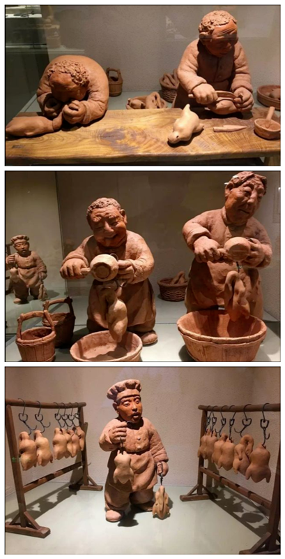 旧时吃烧鸭子前,店中伙计总要拎着一两只鸭子到顾客面前,附带一支尖头的银签子,先让顾客看看鸭子的新鲜程度,再把银签子交到顾客手中,让顾客用银签子扎扎鸭肚子,看看鸭子的肥瘦,不论你是雅座儿的客人还是散客,一视同仁。一只挂炉烤鸭贵的可卖到一两多银子,价值等同20多斤猪肉或50多斤面粉,即便如此,清朝食客依然前赴后继络绎不绝。