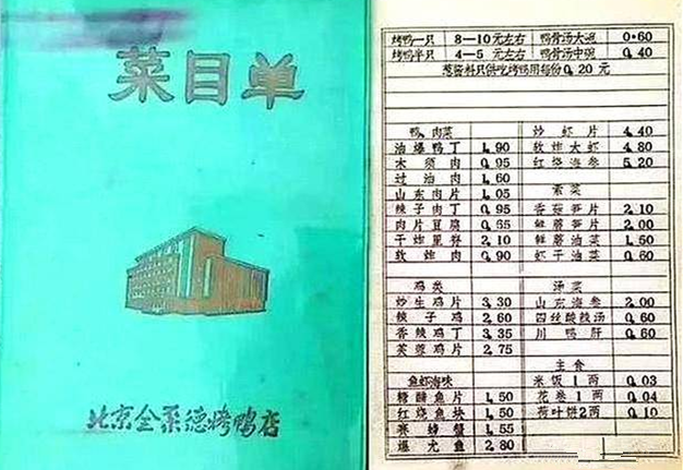 全聚德"全鸭席"多次入选为国宴,凡是到过北京的外国元首,几乎没有不爬长城的,也几乎没有不吃全聚德烤鸭的。全聚德接待过近200个国家和地区的元首、首脑、总理及官员。我们1986年的菜单中可以看到,一只烤鸭的价格在8到10元,根据老一辈的说法,86年的工资水平,大多数人都在36-120元的工资,如果按照这个水平去看的话,无疑一顿半个月工资直接就没有了。