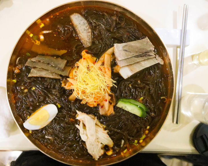 除了冷面,玉流馆的银盘冷面(干拌面)、牛排骨汤、鲻鱼汤饭等也相当值得推荐。成千上百的人在一起品尝冷面,这种场景是你在别处都感受不到的。这个叫什么呢?特色。