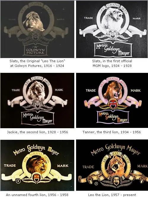 1924年,公司宣传人员霍华德,从自己母校哥伦比亚大学的体育队雄狮队获得灵感,设计了厂标“雄狮利奥”标识。在那个没有先进CG动画技术的年代,拍摄的都是货真价实的狮子。摄影师和狮子零距离,拍摄成功全仰仗驯兽师的技术和摄影师的胆子。米高梅成立至今,前后有七只狮子服役,最近的版本是1957年启用的。2004年9月,被以索尼为首的财团以近50亿美元的价格收购。