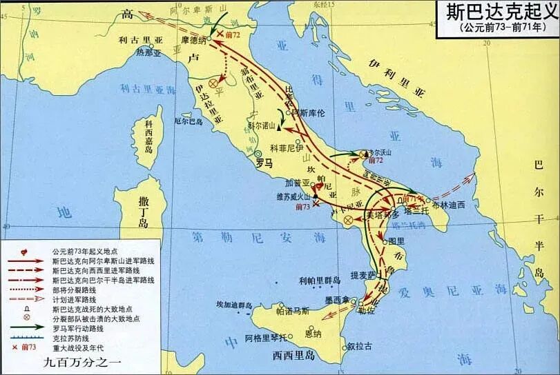无论是斯巴达克斯的“逃离路线”,还是克力克斯的“血战路线”,在没有战斗纲领,得不到根据地发展补给,起义军都是很难成功的。但这却为克拉苏和庞培捞取了不少政治资本,后来他们和恺撒组成了反对元老贵族的秘密同盟“三头同盟”,改变了罗马帝国的历史进程。