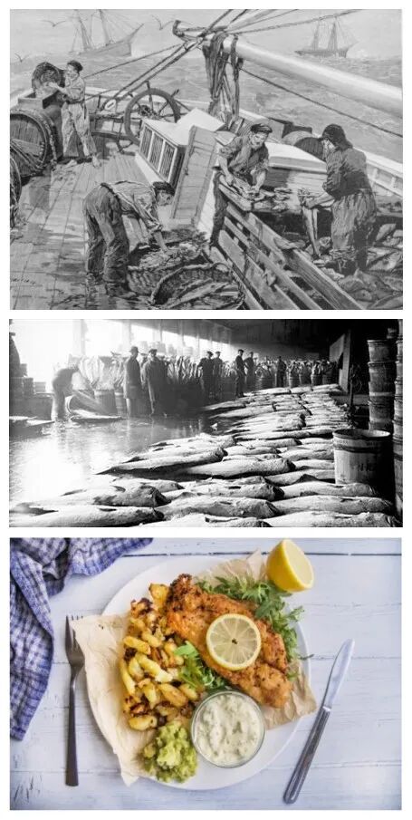英国人吃鳕鱼的历史悠久。中世纪时,由于畜牧业还不发达,老百姓一年到头以谷物充饥,偶尔吃点豆类和奶制品补充点蛋白质。生产力上去能点红肉了,又受到天主教清规戒律的约束:规定四旬斋和每周的周三、周五、周六都不能吃肉(可以吃鱼),否则将会被罚金3磅或监禁3个月。15世纪,英国渔船在冰岛附近发现了大量的鳕鱼群(冰岛附近海域,北大西洋暖流和东格陵兰寒流交汇,非常适合浮游生物生长,渔业资源丰富)。这种鱼不仅块头大、产量高、刺少味道好,而且洄游容易抓,马上就成为英国人钟爱的餐桌食材。著名的炸鱼薯条,也成为英国料理界,少数拿得出手的美食。