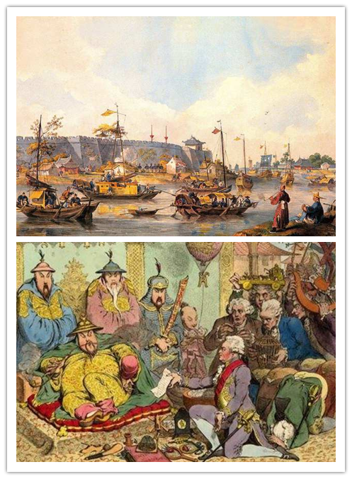1793年,英国使团马夏尔尼带着礼物,漂洋过海觐见大清朝皇帝乾隆,请求与中国通商,恩准做点小生意。马夏尔尼坚持用英式单腿着地的方式行礼,不肯行中式的三跪九叩之礼,再看他提出的通商条款也没多少诚意,十全老人大为震怒,别说通商了,就连北京城你们也别呆了。英国使节愤愤离去,多少心有不甘,多年后用鸦片和枪炮叩开中国的国门。
