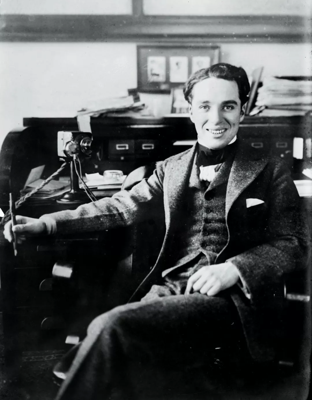 恰好《福尔摩斯》剧组需要一个小佣人的角色,老板选中了毛遂自荐的他,这成了卓别林人生的一个转折点。1914年,卓别林被美国导演麦克·塞纳特相中,签了一年演员合约,开始到好莱坞闯荡。卓别林第一次进片场拍电影。那时还是无声电影时代,演员、导演临时发挥,故事也是根据现场演出情况临时编排。