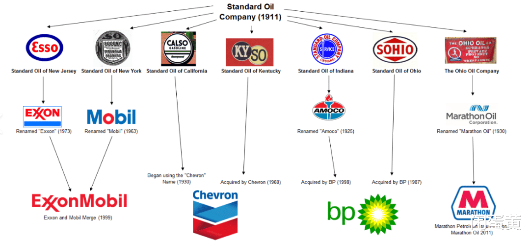 当时的美国,在钢铁、运输、金融、糖酒等几十个行业,许多大企业纷纷学习洛克菲勒,疯狂并购垄断,钢铁大王、石油大王、糖果大王到处走,获得了远超地方政府的权势。自1879年春天开始,洛克菲勒将经受漫长指控和调查,宾夕法尼亚州的地方法院以密谋垄断石油业、向铁路公司勒索折扣和操纵油价等罪名对9名标准石油公司负责人提起诉讼。1897年,洛克菲勒决意让出公司的经营管理权,过起退休生活,并将注意力集中到慈善事业上。1908年,西奥多·罗斯福出任美国总统。老罗斯福看到了托拉斯给美国社会带来的种种弊端:垄断企业的大肆扩张导致市场环境没有生气,大量中小企业破产,人民生活每况愈下。老罗的大棒向托拉斯们挥去,1911年5月15日,美国联邦最高法院终于进行“最后裁决”:标准石油公司必须在6个月内解体。随后标准石油被拆分为约34家地区性石油公司,只不过这些公司75%的股票仍由洛克菲勒掌控,投资者依然热衷地追捧这些“婴儿”的股票,洛克菲勒家族的财产非但没有减少,反而比从前更多了。