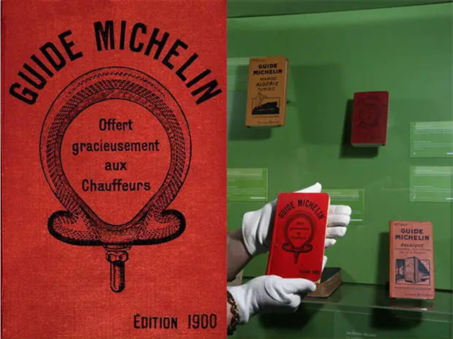 米其林集团除了在海外设厂,产品推陈出新外,还积极推动汽车业的发展。安德烈打算免费提供一种小册子,里面囊括驾车出游时所需要的加油、修车、住宿以及饮食等信息,可被人放在车内,又轻巧便于携带。说干就干,第一本红色封皮的《米其林指南》,于1900年8月首发,刊印将近3500本。那时候全法国的汽车加起来不过3000辆的样子,所以米其林这次跨界营销,看起来更像是次赌博。然儿,安德烈却颇有信心地在指南的前言中写道:“这本指南诞生于世纪之交,并将与世纪共存。”
