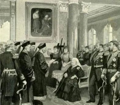 8 月 2 日,从勒阿弗尔(Le Havre)乘坐法国政府雇佣的大西洋公司专船渡过英吉利海峡,抵达英国南安普顿(Southampton),到访当时世界最强大的国家。8 月 6 日,年近八旬的维多利亚女王在阿斯本行宫接见了李鸿章,并授予他维多利亚勋章(Roya lVictorian Order)。李鸿章还见到了当时的英国首相格兰斯登。英国女王还邀请李鸿章参加了,朴茨茅斯军港每年举行一次的海军大检阅。李鸿章每至一舰,各舰均降旗致敬。军官率领着全体士兵肃立于甲板上,接受李鸿章等人的检阅。李鸿章沉默良久感慨万千“余在北洋,竭尽心思,糜尽财力,俨然自成一军。由今思之,岂直小巫见大巫之比哉?”