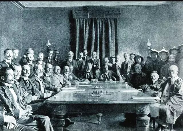 19世纪末,在慈禧默许下,义和团打着“扶清灭洋”的口号进京,围攻各国领事馆。慈禧痛恨洋人,借机向列强宣战。接着,各国立即组成八国联军,一路进京。北京城已无力抵御,于是慈禧带着光绪帝匆匆向西逃窜,命两广总督李鸿章全权代表清政府,赶赴北京与列强谈判。