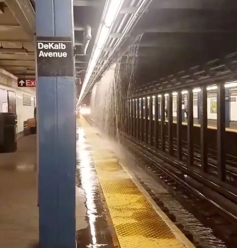 但这些困难,和纽约天气带来的窘境相比,根本不值一提。纽约地铁很浅,从地上走几米就可以下到乘车站台。外面的水和温度对地铁系统影响明显,可谓四季分明。四到六月月下大雨,纽约地铁就容易变成,外面下暴雨,里面下“洪水”的水帘洞;十二月到三月下雪,地站台则冷成冰窟窿。