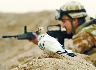 鸽子在战争中也占有一席之地,主要是由于鸽子有着强烈的归巢能力和飞翔能力,可以从数千里外自己回家。不过,你要想信鸽从上海飞北京,就要把它从小饲养在北京,需要时带到上海放飞,信鸽才会发挥天赋,努力地飞回自己原先在北京的家,养鸽人常说是“不死必归”。70周年大阅兵时,放飞了7万羽和平鸽、7万只气球。这7万只信鸽绝大部分,都是问北京市民借来的可回收“信鸽”,国庆礼毕后它们自己会飞回家。