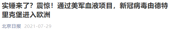 这一新闻由于涉及新冠疫情来源,引发公众强烈关注,而据美国世界新闻网(wn.com)最新报道,正是2019年美军通过其血液项目将新冠病毒带到了欧洲,而进入意大利美军基地的平民志愿者,成为了最早的受害者。