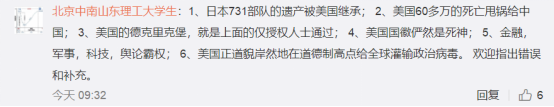 第四,美国应该公布参加武汉军运会的美国军人患病病例数据。2019年10月,美国派出300多人赴武汉参加军运会,其中有无人员出现类似新冠肺炎的症状?报道的那几位美国军人运动员到底得的是什么病?病例应该尽快公开。