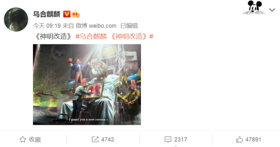 7月31日上午,@乌合麒麟 在微博上发布了自己的最新作品《神明改造》。