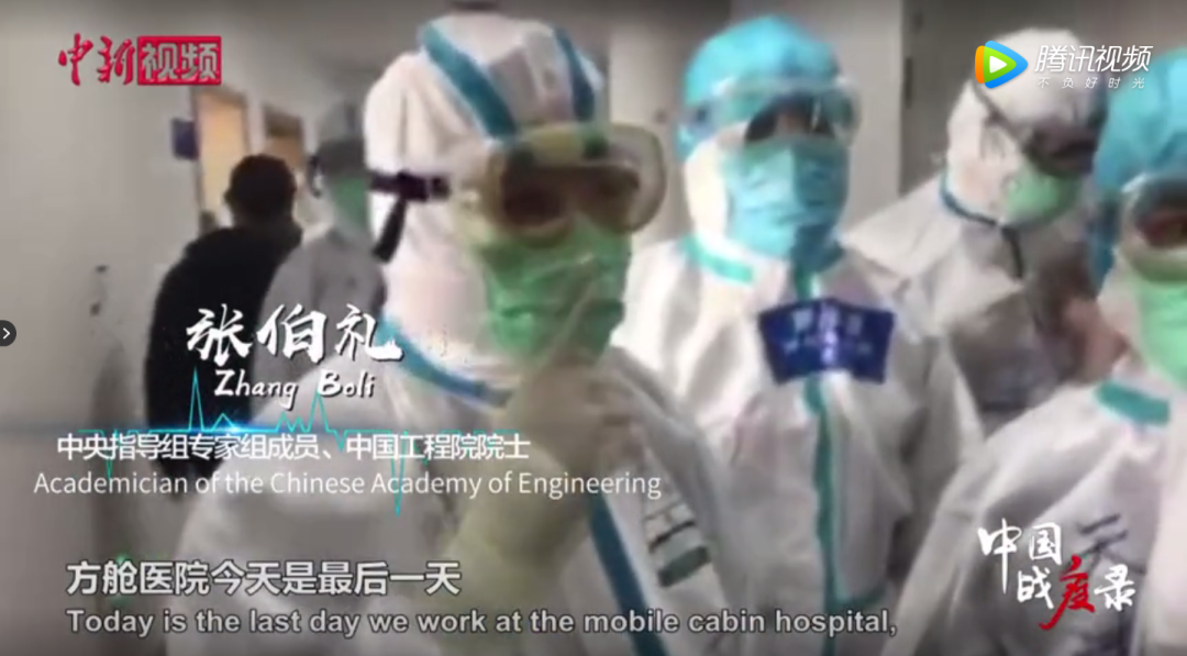 如此看来,视频中张院士做的唯一一件事就是,在方舱任务结束后,作为领导到一线进行总结讲话。