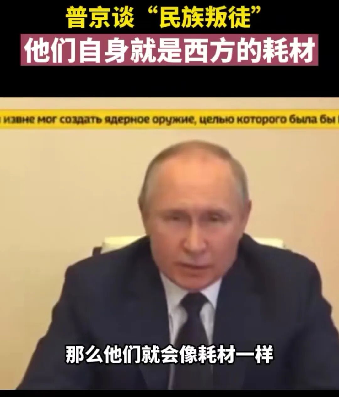 普京说,西方安插在俄罗斯的“第五纵队”和民族叛徒,不过是西方的耗材。耗材嘛,就是最大程度地损害人民,然后用完就扔,就是孙武说的死间。