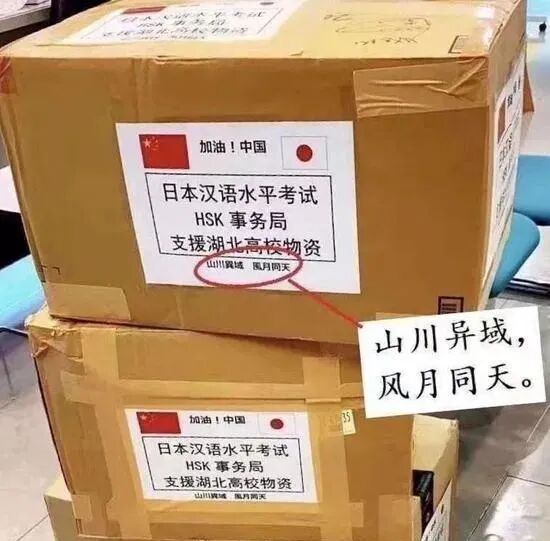 难道是像当初日本给我国捐赠抗疫物资时说的那样,山川异域,风月同天?