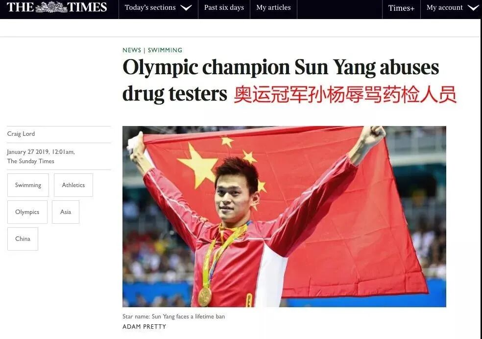 再比如,2019年1月3日,国际泳联反兴奋剂委员裁决:孙杨没有兴奋剂违规行为。英国《星期日泰晤士报》却在2019年1月27日刊文恶意虚假报道,称孙杨与反兴奋剂检测人员发生冲突,将面临终生禁赛。