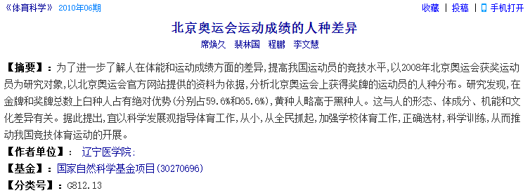 也就是说,中国人打破了西方编造的体育运动“人种差异”理论。