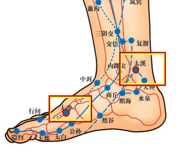 按摩方法很简单:用拇指指端着力在穴位上,每次点按30秒钟,出现稍稍酸胀感觉,反复点按20次;太溪穴是足少阴肾经的原穴,原穴能够激发调动全身的动力,具有较好的补益肾阴,肾阳的作用。按摩方法同上。