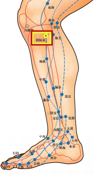 阴陵泉穴:在膝下内侧的陉骨正下方。阴陵泉穴是个排湿大穴,按压此处有助于排除体内的湿气,对于因水肿所引起的肥胖也有效用。