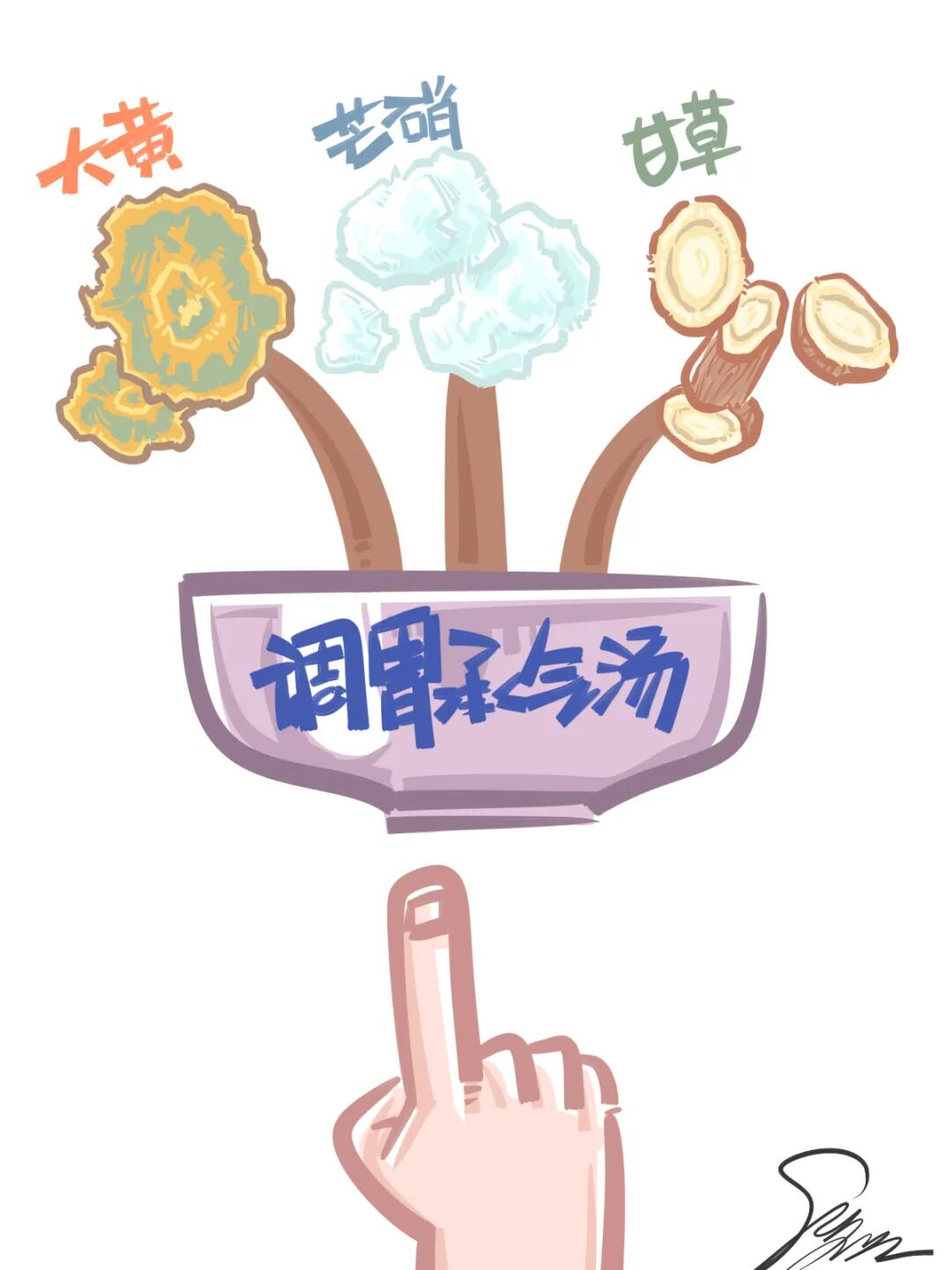 大部分人看到这里可能已经有些不耐烦了,那我就拿出一些干货给大家提提神,今天咱们主要讲的方子是调胃承气汤。